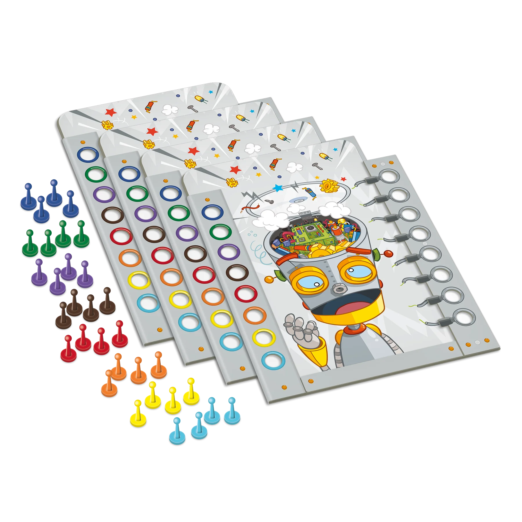 Ensemble de 4 gabarits du jeu L’automate, incluant les pions, conçu pour les fiches du préscolaire, des 1er et 2e cycles ainsi que du français langue seconde. Les fiches à insérer dans le gabarit sont vendues séparément.