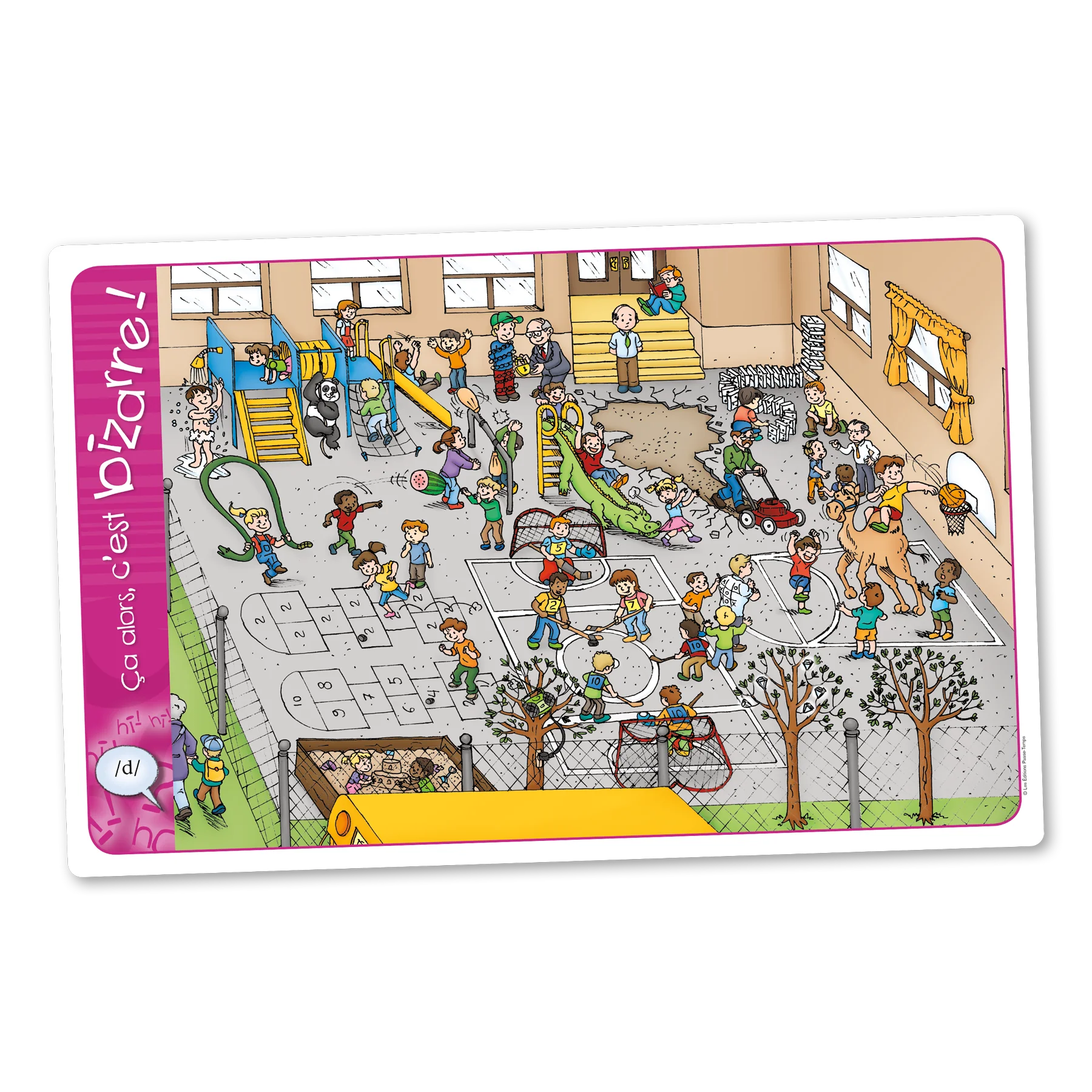 Vraiment amusant de trouver les 15 situations bizarres cachées sur chaque planche! En incitant les enfants à utiliser le langage oral pour discuter de ces situations bizarres, ces jeux permettent de travailler la production de chaque phonème. Ils permettent également de développer le vocabulaire réceptif et expressif, le raisonnement ainsi que les habiletés syntaxiques.