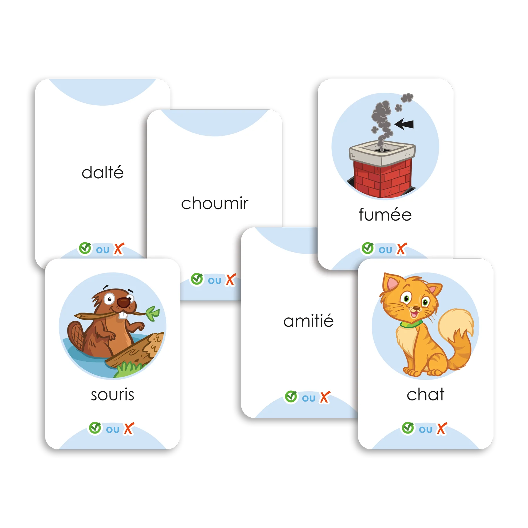 Jeu de lecture correspondant au niveau 3 de l'échelle Décode. Les joueurs doivent déterminer si le mot écrit sur une carte est un vrai mot ou si l'image qui l'accompagne lui correspond. Le jeu permet de consolider l'apprentissage des correspondances graphèmes-phonèmes du niveau ciblé et de s'exercer à reconnaitre les pertes de compréhension en cours de lecture.