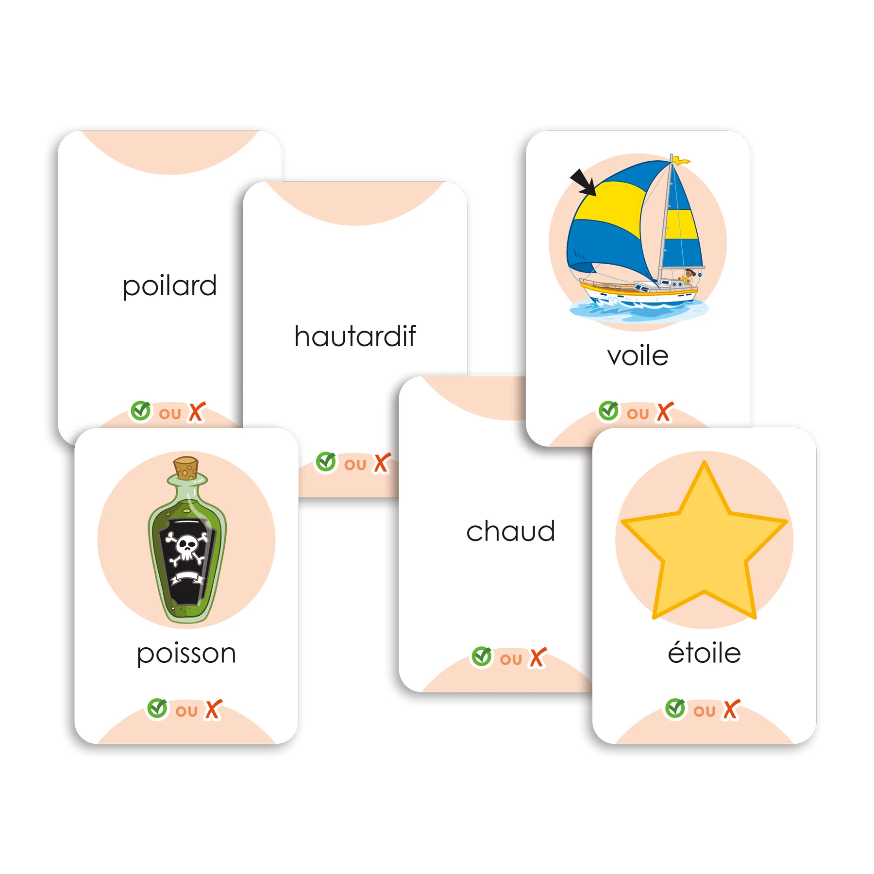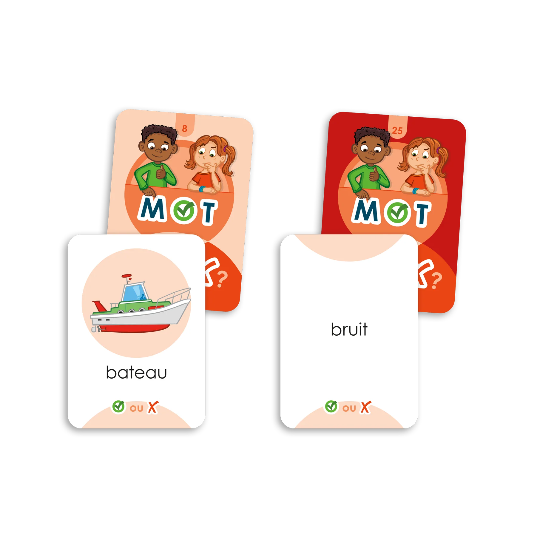 Jeu de lecture correspondant au niveau 5 de l'échelle Décode. Les joueurs doivent déterminer si le mot écrit sur une carte est un vrai mot ou si l'image qui l'accompagne lui correspond. Le jeu permet de consolider l'apprentissage des correspondances graphèmes-phonèmes du niveau ciblé et de s'exercer à reconnaitre les pertes de compréhension en cours de lecture.