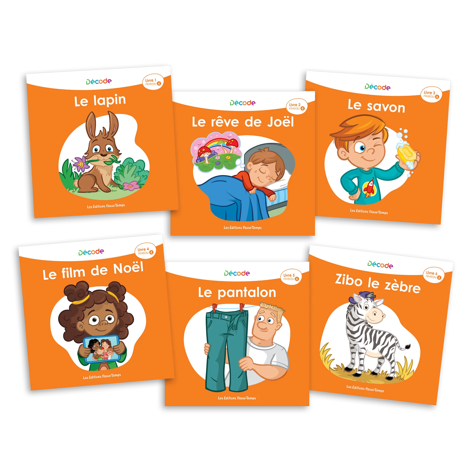 Décode est une collection de livres gradués spécialement conçue pour accompagner pas à pas le lecteur dans son apprentissage du décodage. Elle propose 6 niveaux de 12 livres qui incluent de façon progressive les correspondances graphèmes-phonèmes et les particularités de la langue française. Les 72 livres gradués permettent ainsi aux lecteurs débutants de réinvestir petit à petit leurs apprentissages dans un contexte de lecture authentique et amusant qui correspond à leur niveau d’habileté. La série 1 Introduction comprend les livres 1 à 6 alors que la série 2 Consolidation inclut les livres 7 à 12 de chacun des niveaux.