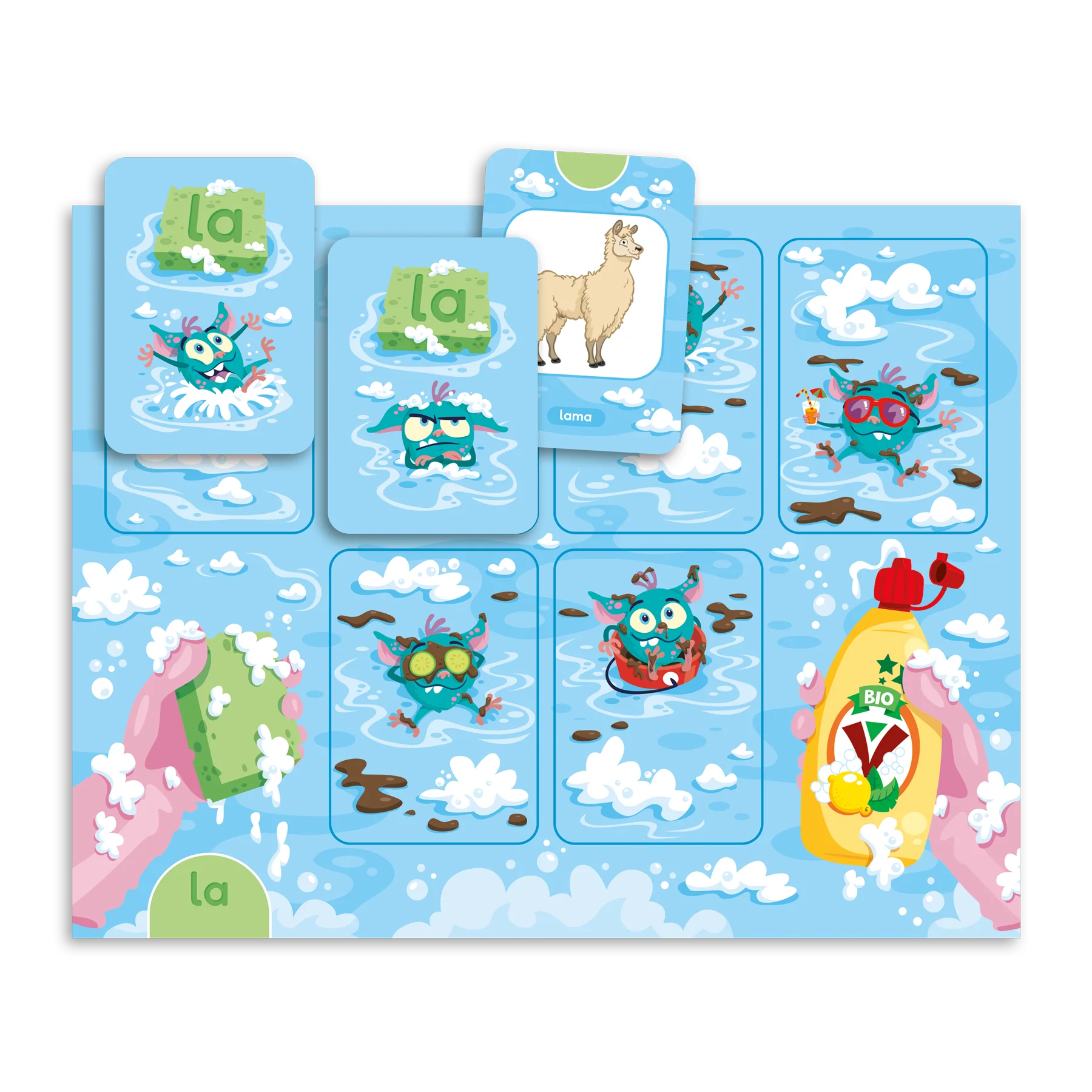 Détecteurs de syllabes est un jeu destiné aux élèves du préscolaire ciblant l’habileté à identifier une syllabe dans un mot. Les joueurs doivent détecter une syllabe orale donnée dans des mots afin de nettoyer des vlipous, de petites créatures qui aiment se salir et faire des mauvais coups. Mais attention, car Gargotte le monstre essayera de semer la pagaille en volant l’éponge des joueurs!
