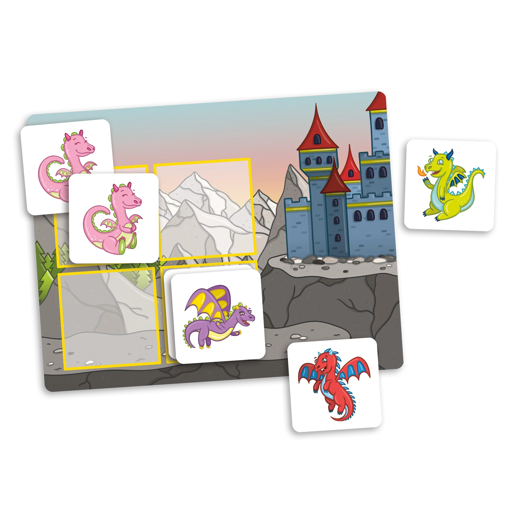 Les monstres, les licornes, les fantômes et les dragons se sont cachés! Concentre-toi, observe bien et essaie de te rappeler où sont les jumeaux! Tu pourras ensuite les aider à regagner leur monde.