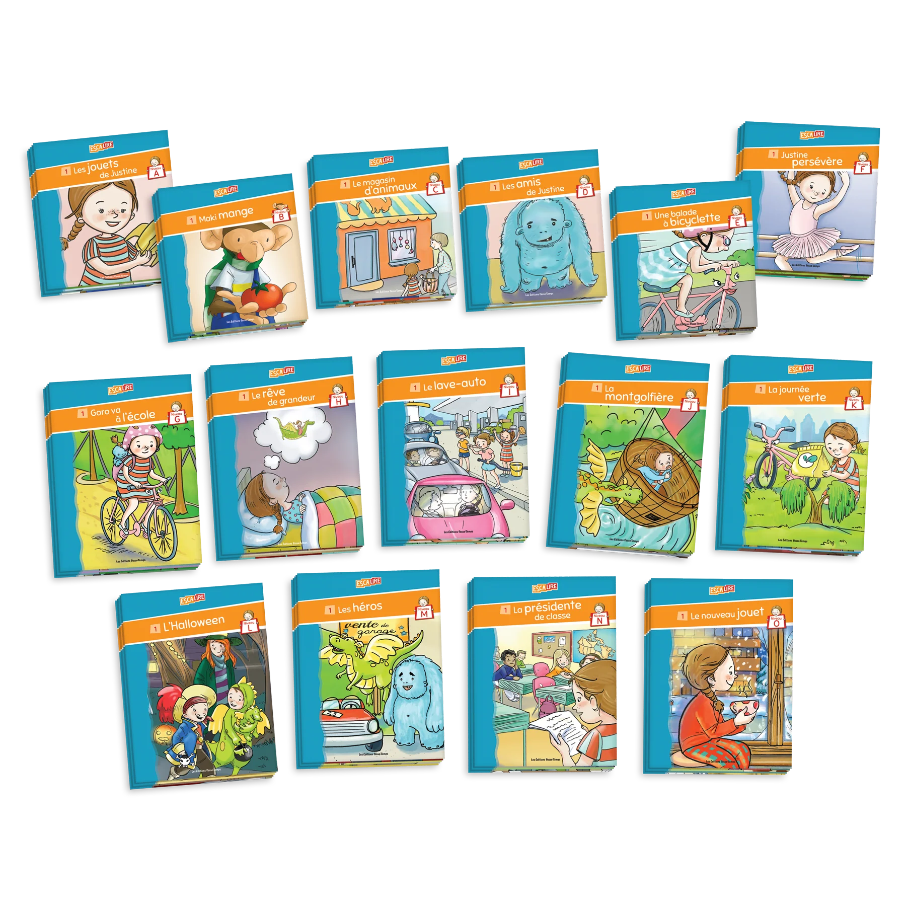 Cet ensemble comprend les 156 livres de la collection Escalire pour la 1re à la 4e année (niveaux A à O). Escalire est la collection de référence en littératie graduée. Basée sur une version perfectionnée de l’échelle de Fountas et Pinnell et rédigée en français, elle comprend 156 livres répartis sur 15 niveaux (lettres A à O). Elle est donc la plus grosse collection graduée à exploiter les mêmes personnages dans l’ensemble de ses livrets.