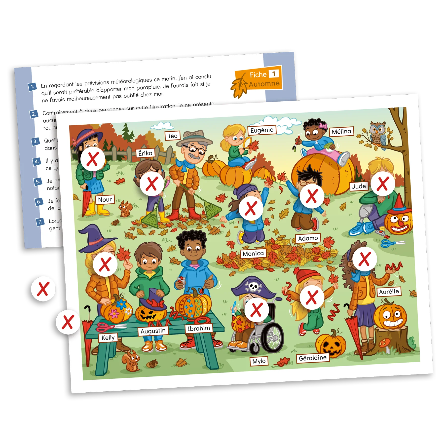 Les saisons – Mégathème (3e cycle) est un jeu de lecture et d’inférences dans lequel le joueur doit identifier des personnages à partir des descriptions fournies. Le jeu comprend 4 planches de jeu distinctes (en 4 exemplaires chacune), représentant chacune une saison, et 40 fiches de lecture (10 par saison). Ainsi, l’intervenant peut utiliser le jeu tout au long de l’année scolaire, au gré des saisons.