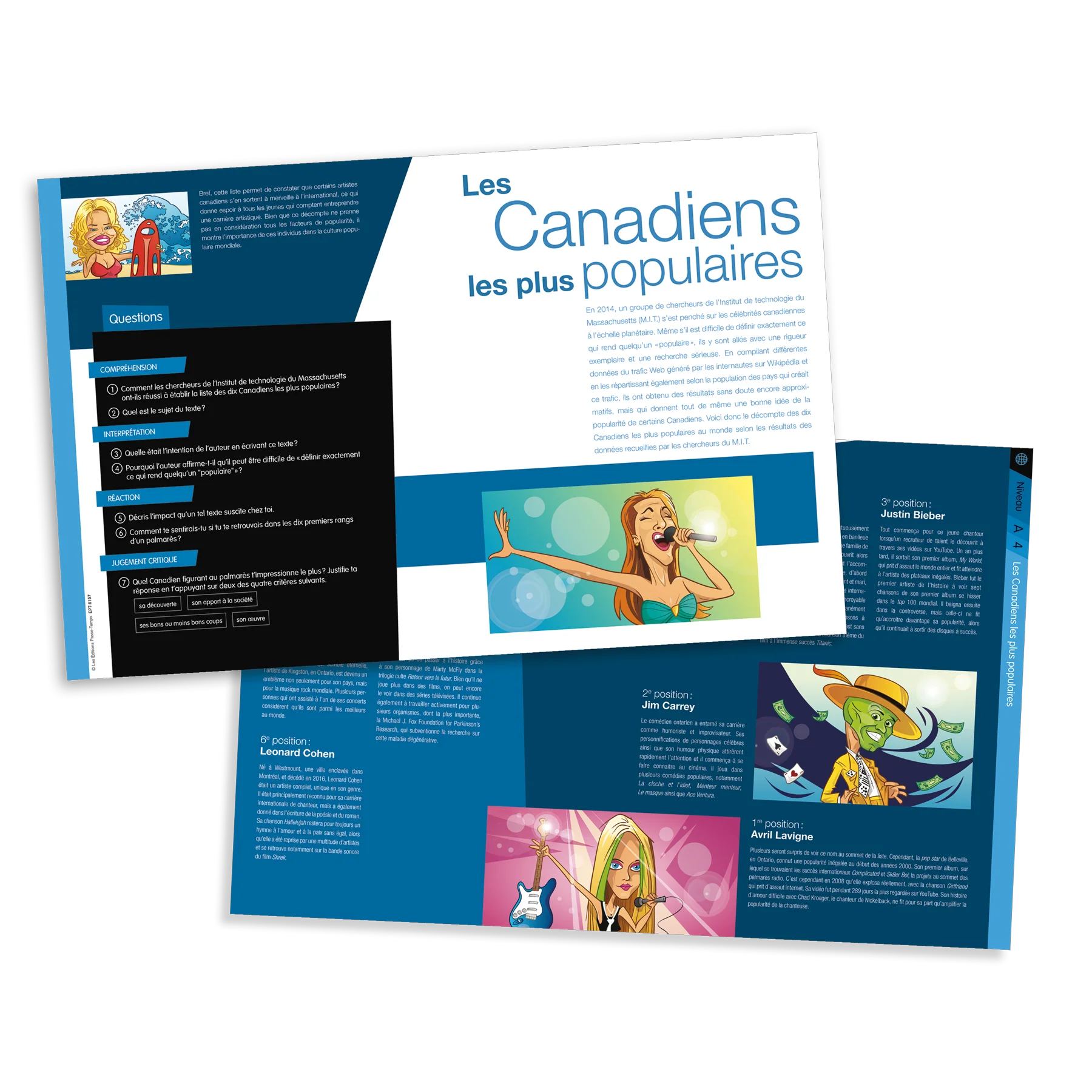 Chaque fiche comporte plusieurs questions regroupées selon le type de question (compréhension, réaction, interprétation, jugement critique). La durée des fiches (longueur du texte et des questions) a été conçue pour que les fiches puissent se réaliser en une période (pour la plupart des élÚves). La boite inclut les fiches imprimées (carton laminé) et également la version PDF.